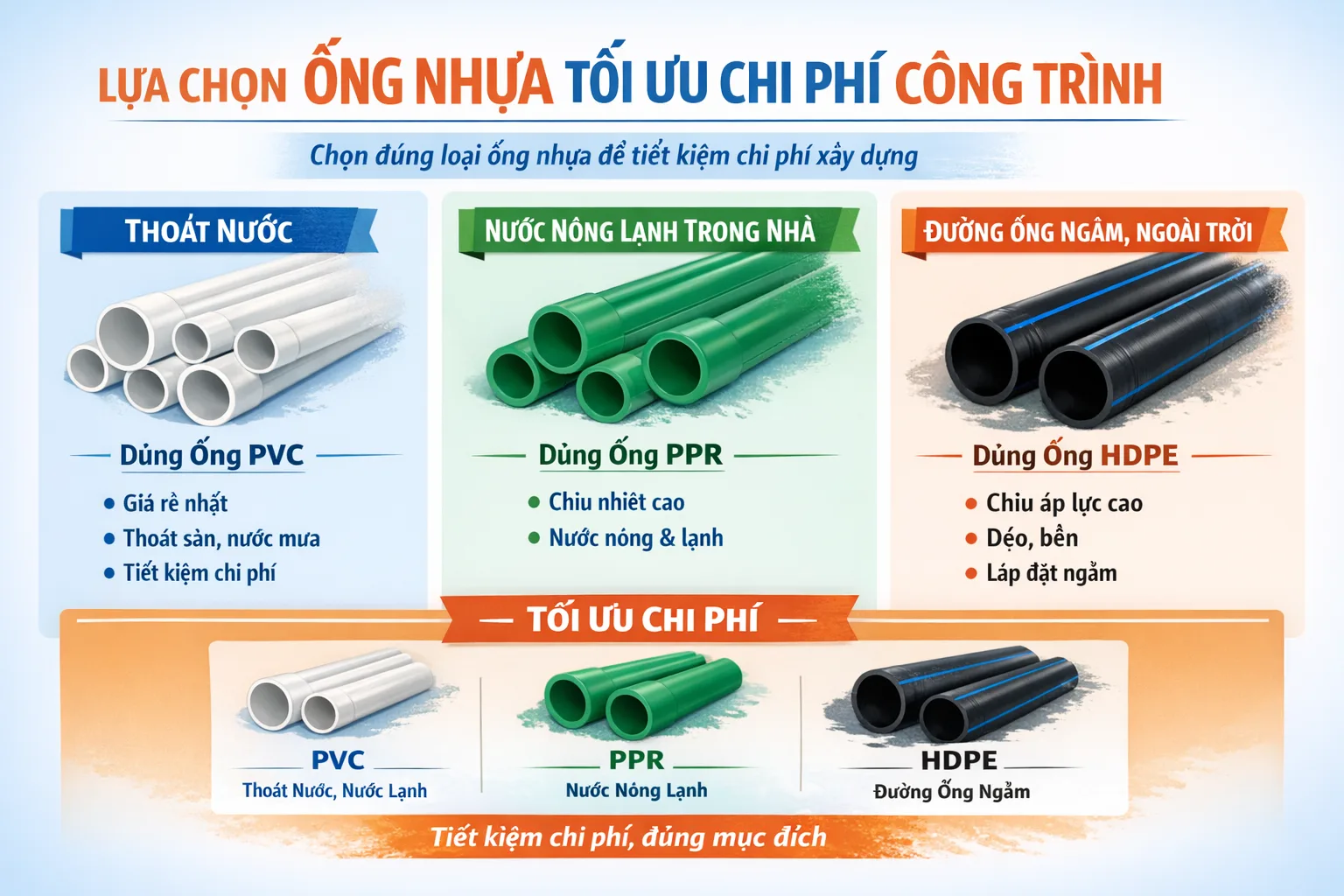Hình ảnh minh họa lựa chọn ống nhựa phù hợp để tối ưu chi phí công trình