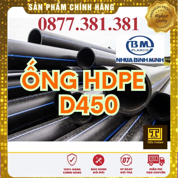 📌 Giá trên áp dụng cho ống nhựa HDPE Bình Minh D450. Đơn vị tính: mét. Vui lòng liên hệ để nhận báo giá sỉ, lẻ và chiết khấu công trình.