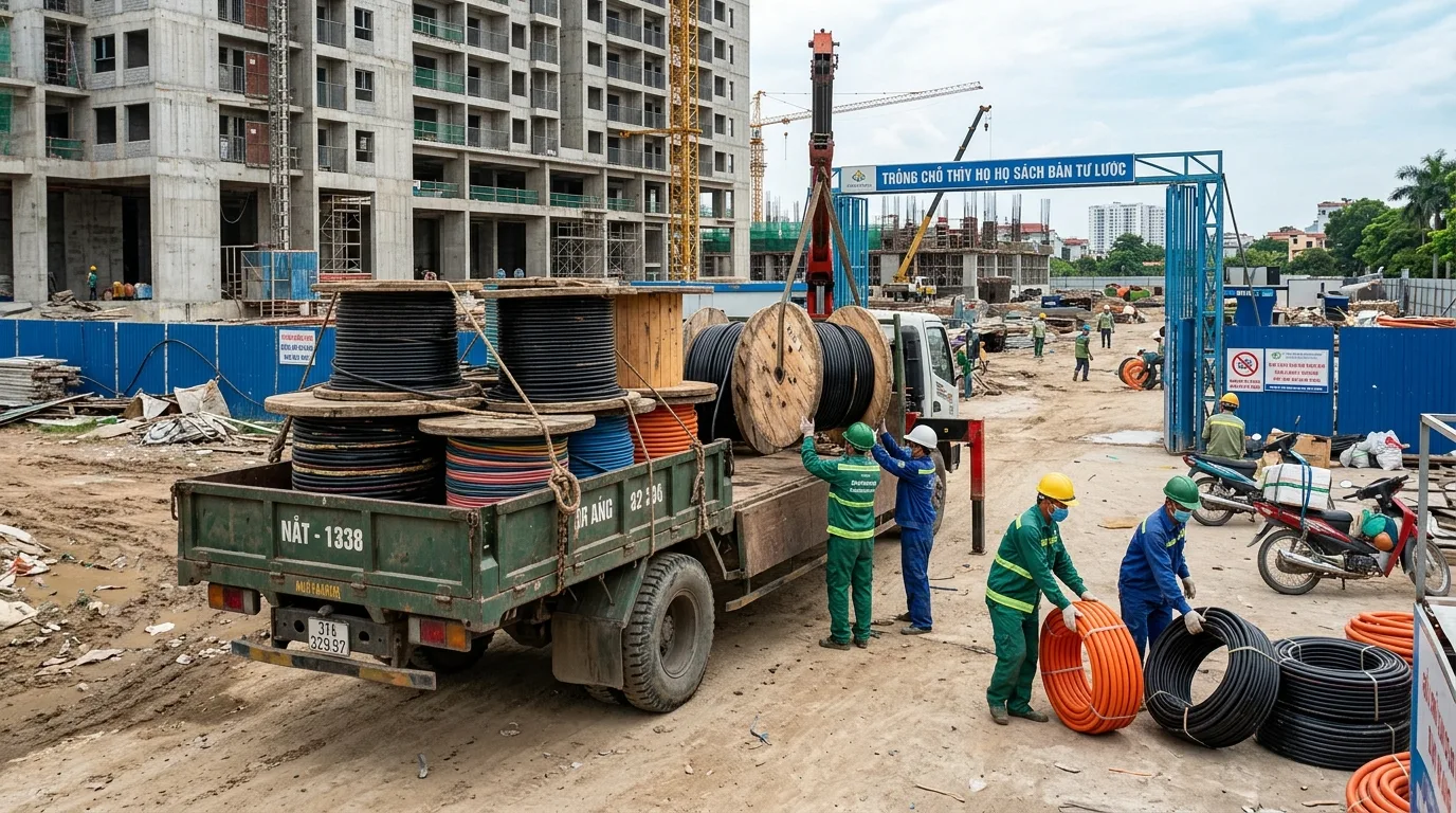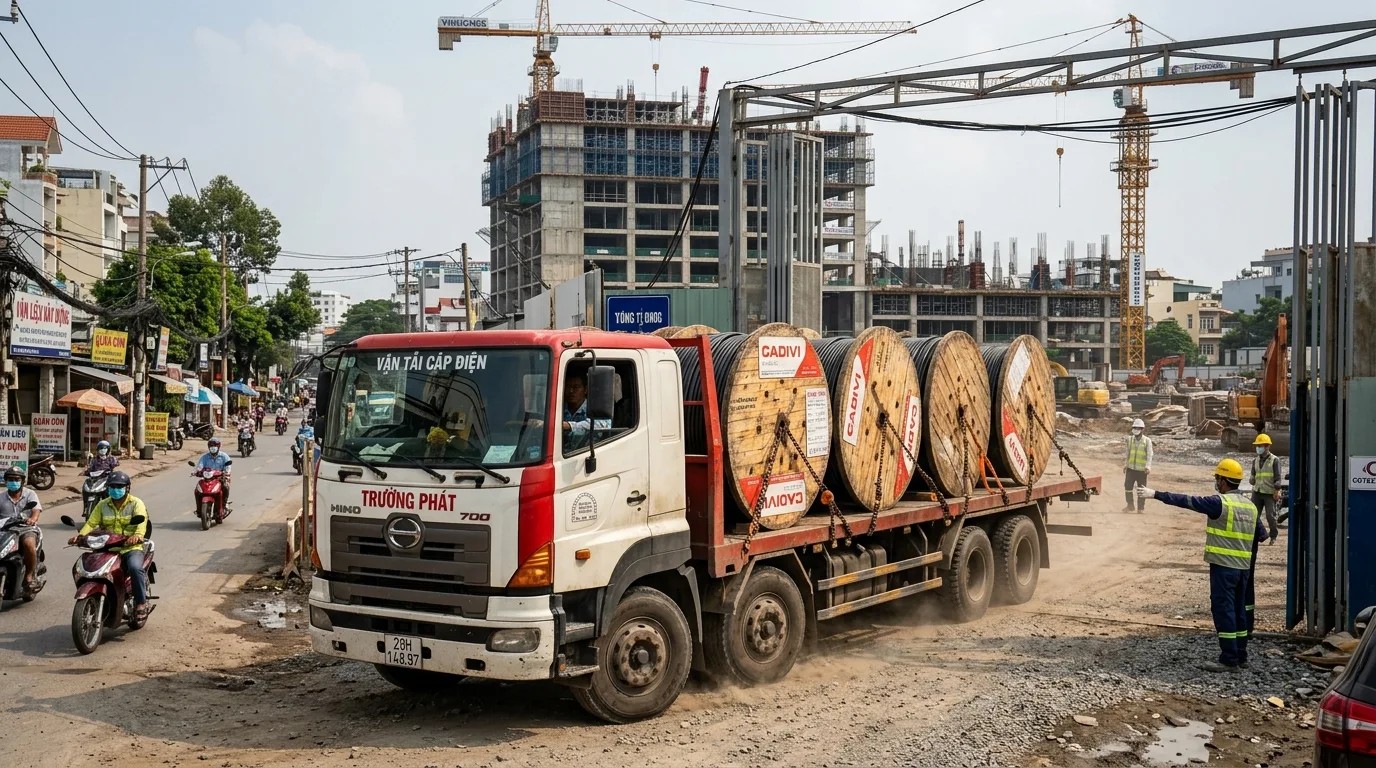 Vận chuyển dây điện số lượng lớn tại công trình xây dựng