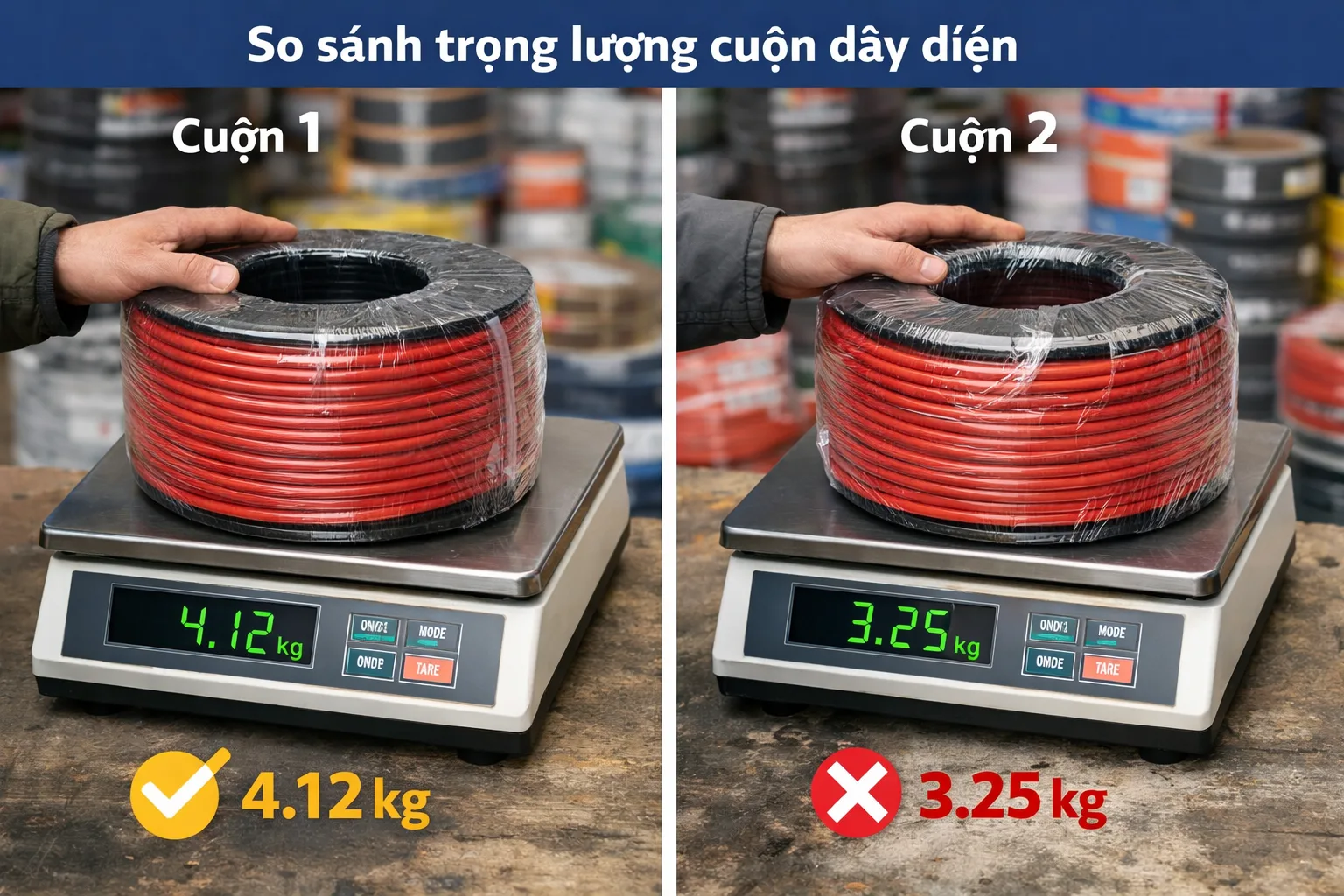 Vì sao người mua thường so sánh trọng lượng giữa các cuộn dây?