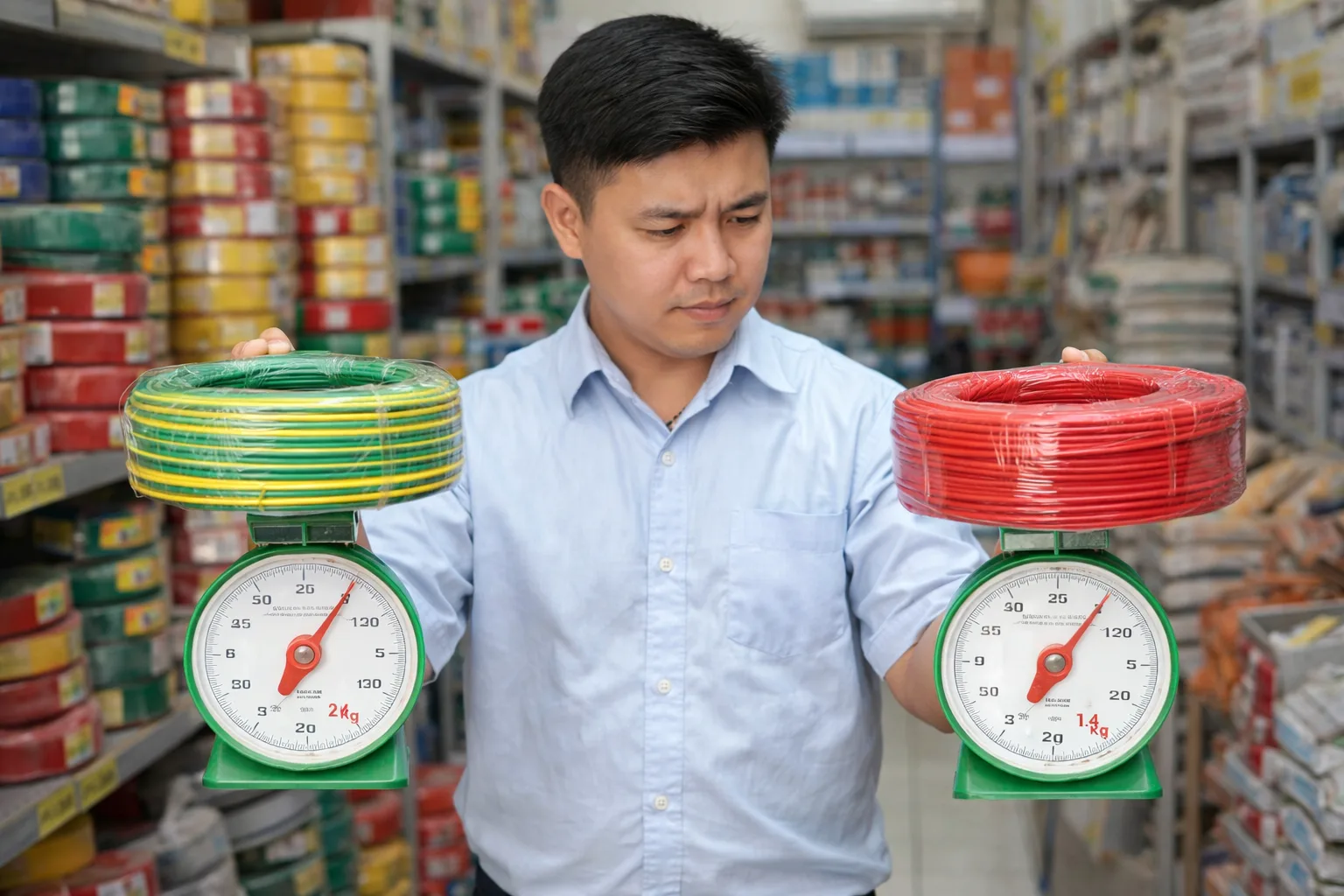 Khi đi mua vật tư điện, nhiều thợ lâu năm chỉ cần cầm cuộn dây lên là đã đoán được chất lượng. Cách làm này không phải cảm tính, mà dựa trên kinh nghiệm thực tế gọi là chọn dây điện theo trọng lượng.